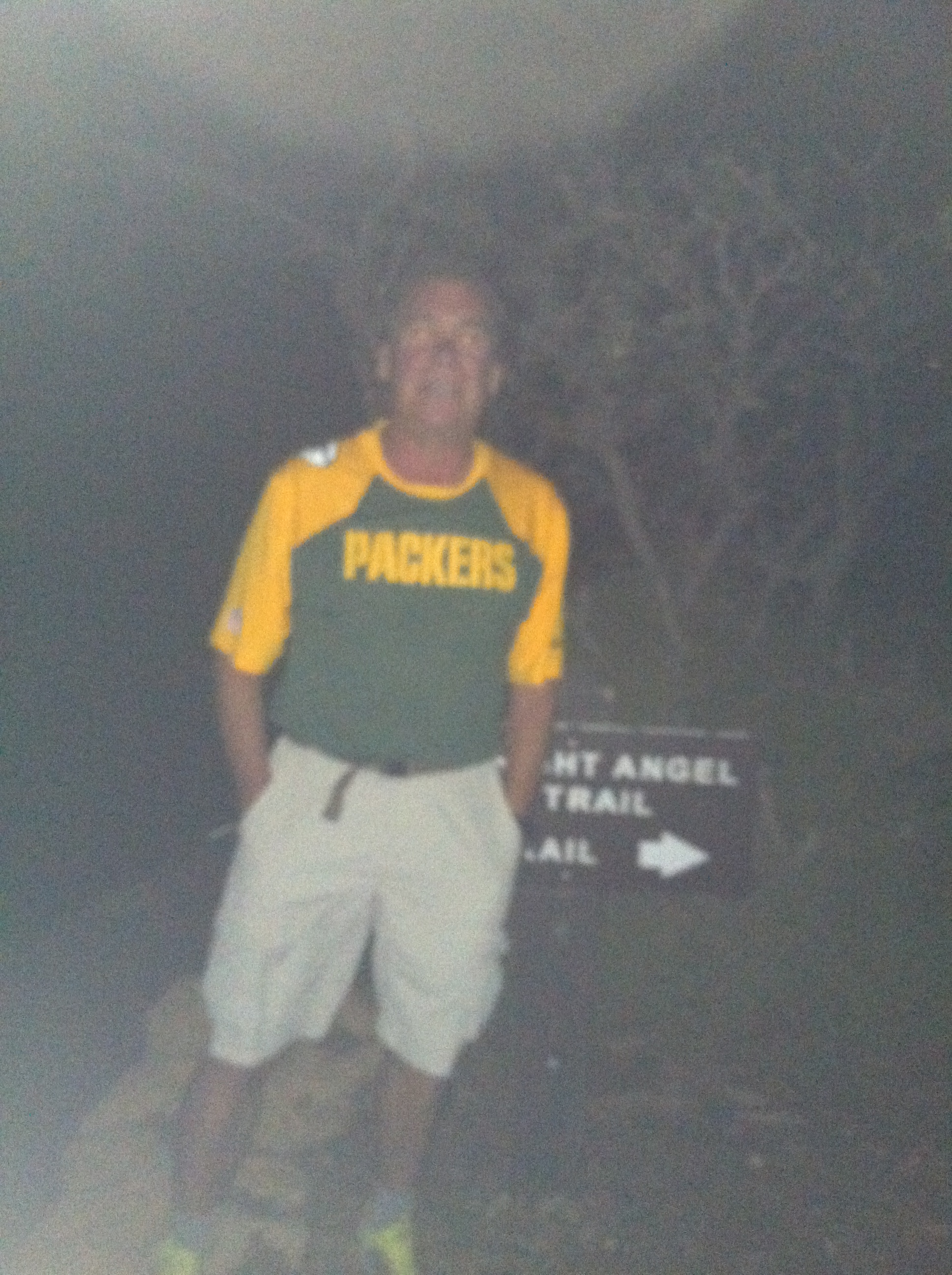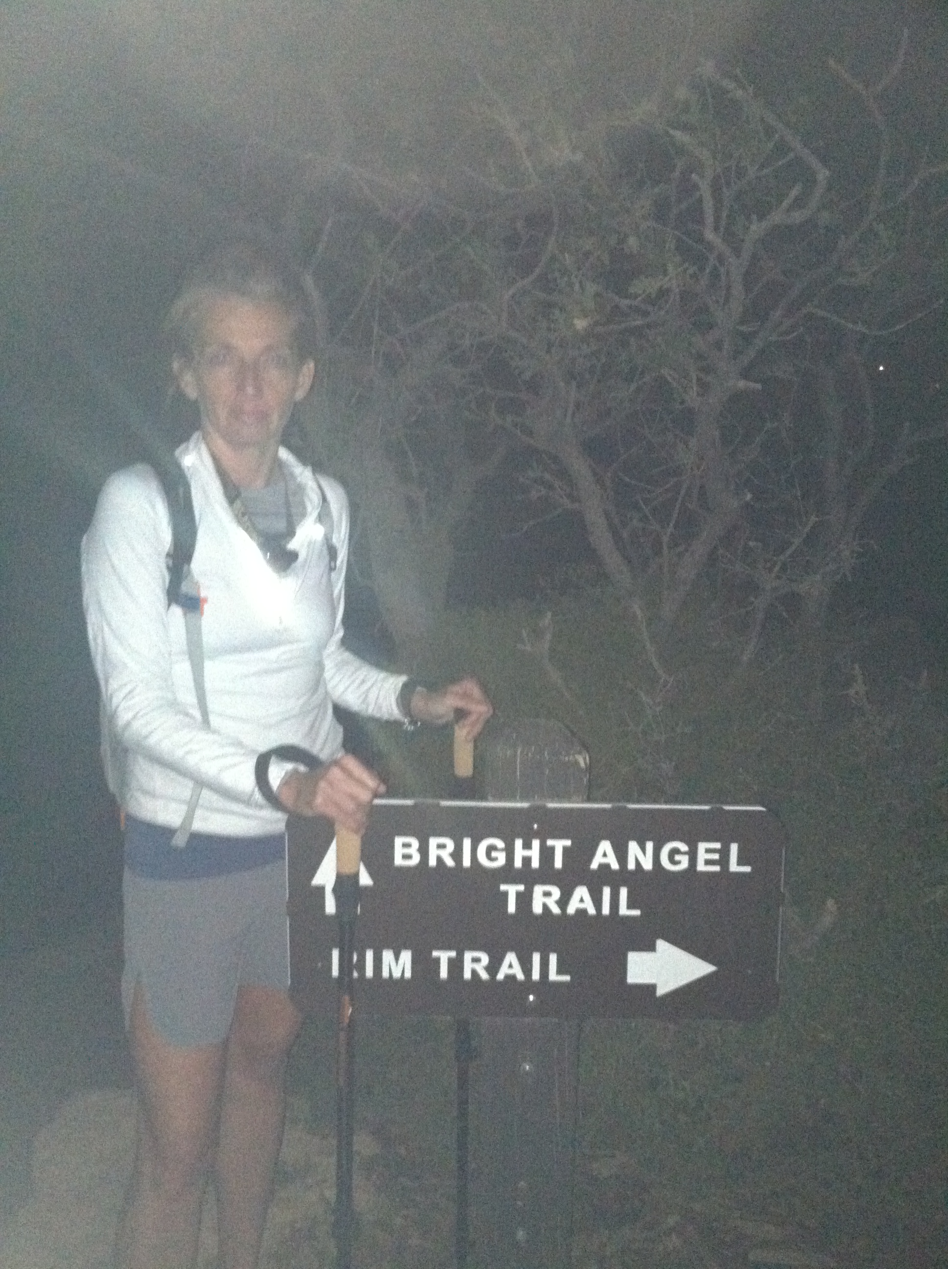 I believe that since we are going down the Bright Angel Trail (approximately 10 miles) to Phantom Ranch, if we leave by midnight we should get there for the 5:00 breakfast. Boy was I wrong. I was outvoted on a 1 to 1 vote and Carolyn and I take off around 10:30. Anxious? Yes. Excited? Yes. Ready to depart on the journey into the grandest canyon? Yes. Will it rain? Please no!