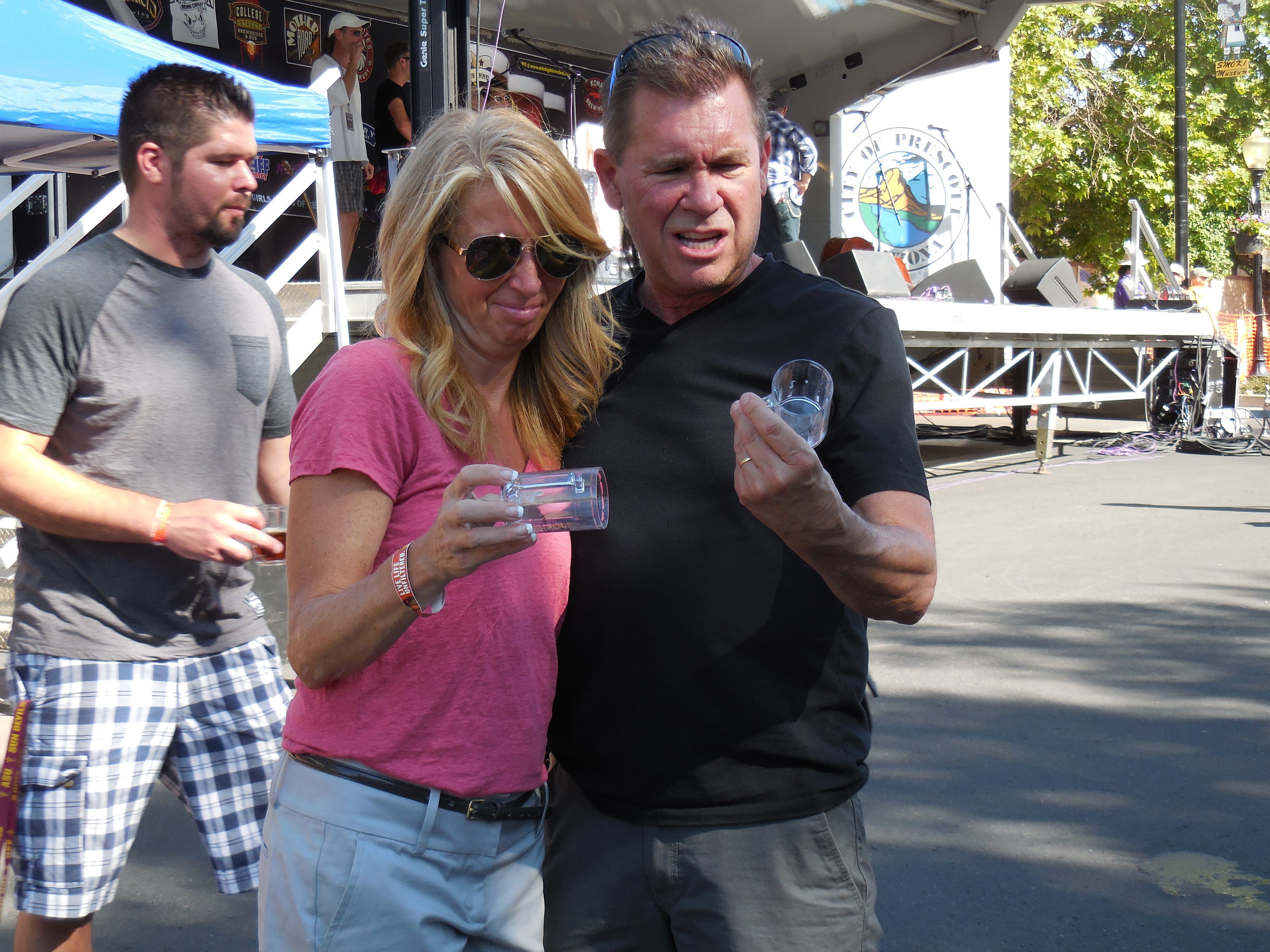 WDSCN0299e roll on into Prescott, park, and head over to the Courthouse area and buy our tickets for $35 each with a cup and 10 samplings a piece for Carolyn and I and Jordyn, as the designated driver, gets to hangout for free. We arrive just after open and lines are short initially. Close to 30 different breweries plus multiple selections from the breweries make for many beer tasting opportunities. We are are quite concerned that we will run out of tickets since there is only three ounces or so in each sample. We should have never worried as we learned to play hide the ticket when they turn to pour your sample. Actually some didn’t care if you had tickets or not.