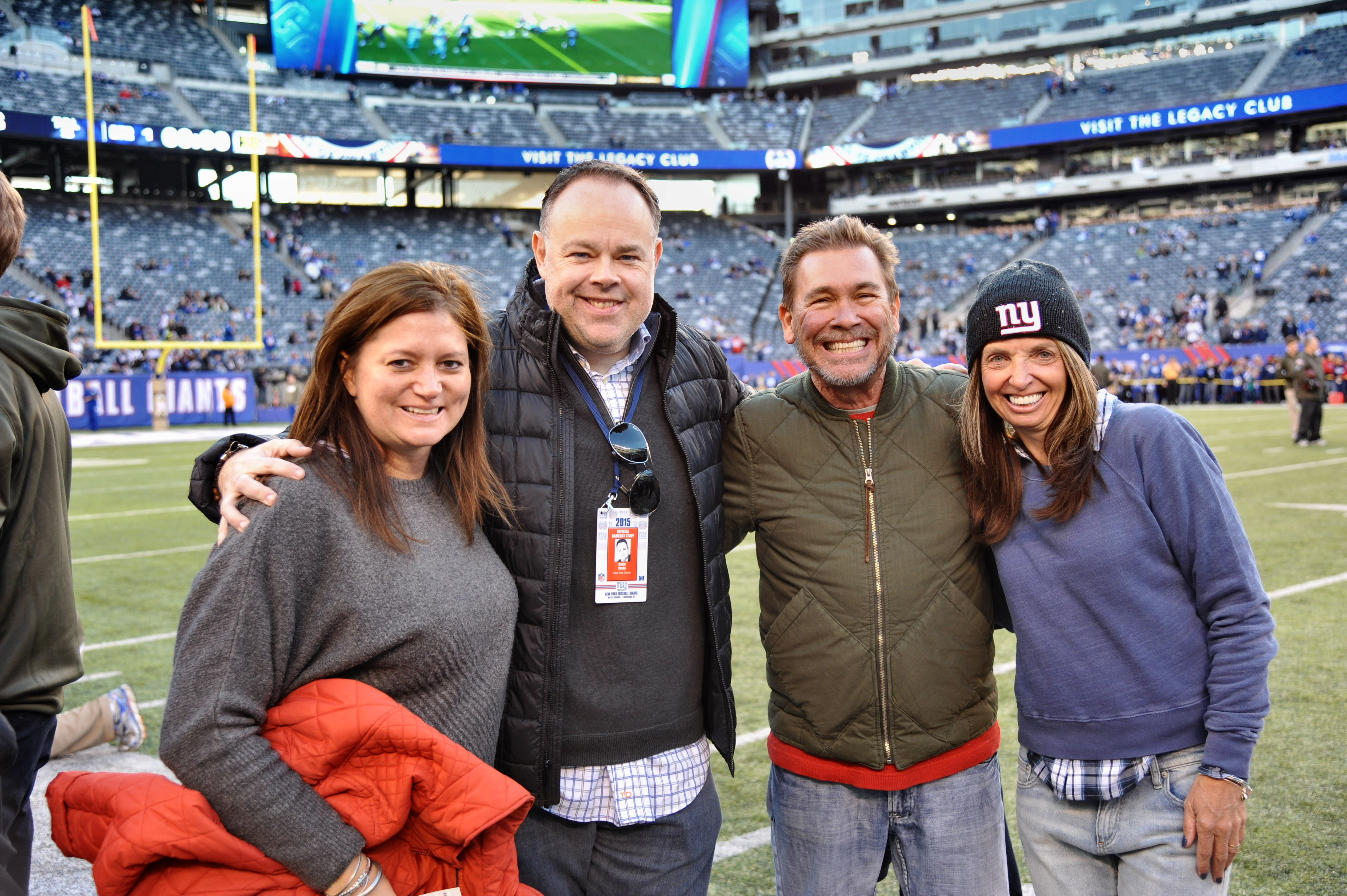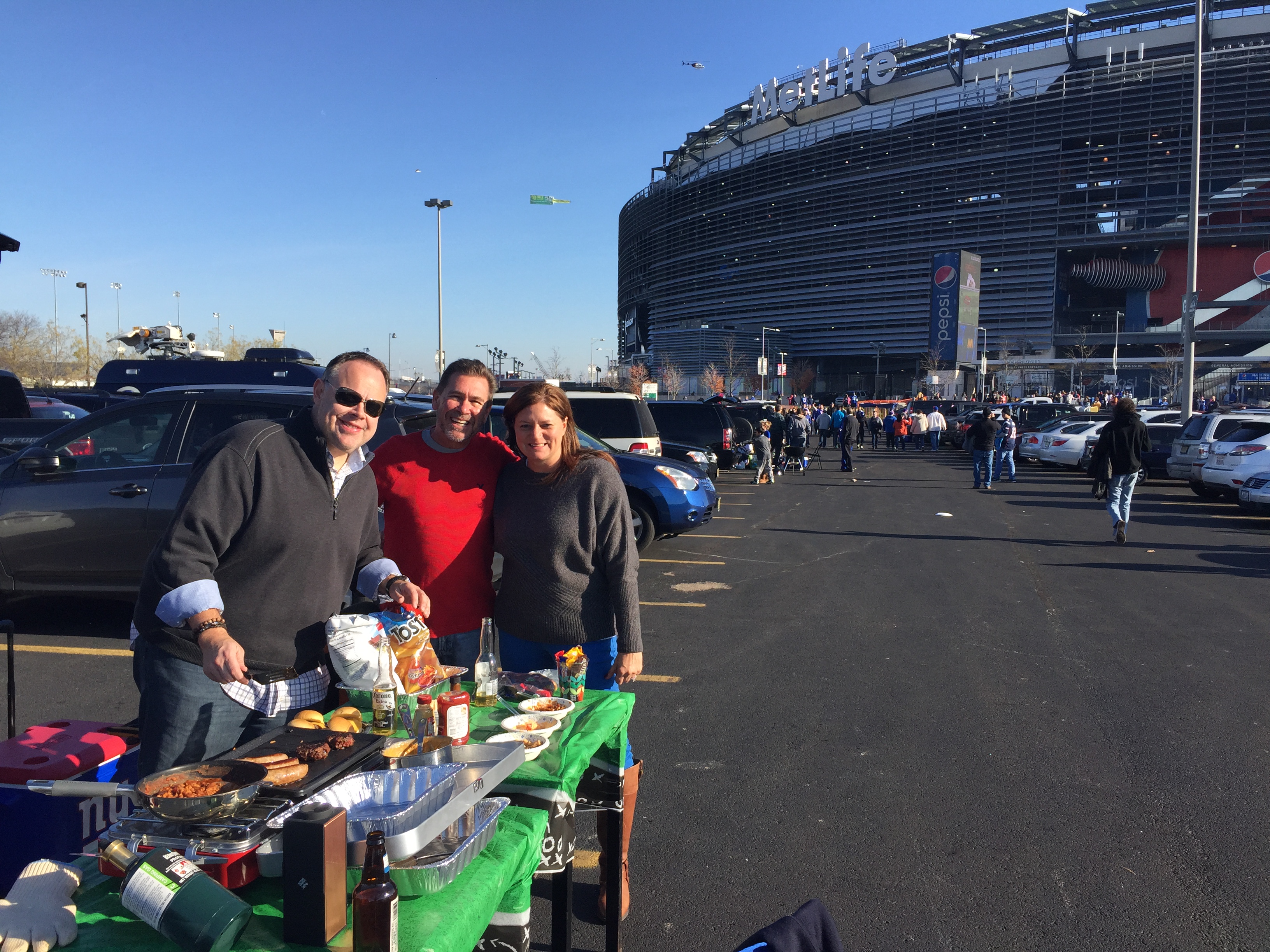 Next stop is Kevin and Laurayne’s tailgate center. IMG_3700It is sunny, cold and blustery, but Kevin is grilling up some masterpieces. He has made some “onion” burger sliders and they are a touchdown! So good in fact, I eat like three of them. And of course they have brought some of those Coney Island Mermaid Pilsners. Just perfect. Bryan, Caitlin, and Jordyn have arrived to join the fun. While there, it is evident that Kevin knows a lot of folks that have a long time relationship with the Giants organization. We even meet Joe Morris, a former Giant running back, currently working with the NFL as part of their uniform police team. Very nice man. Great food, great time with the Crokes.