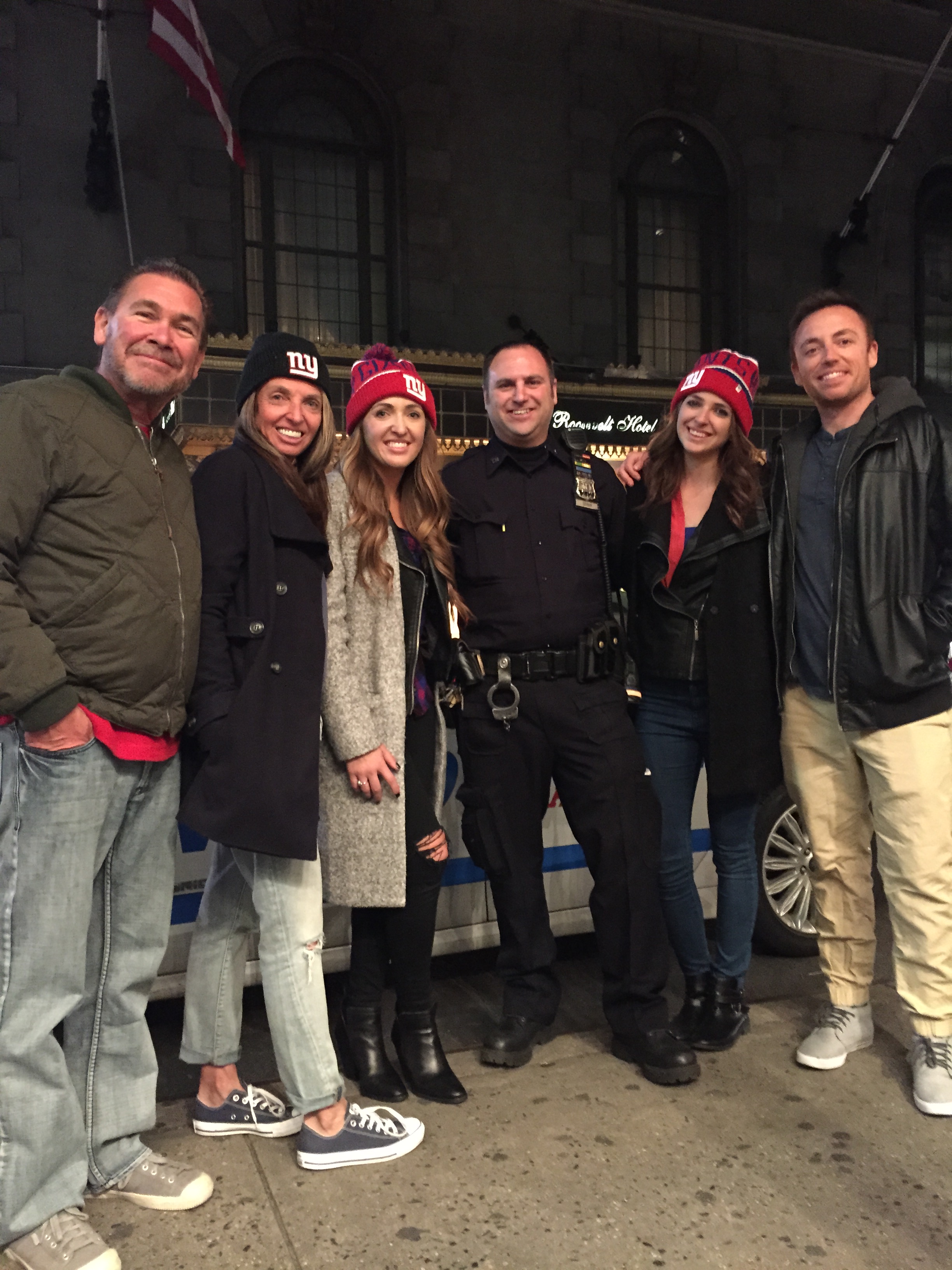 We enjoy a great game after returning to our seats and NY Giants should have won. We say our goodbyes to our most gracious hosts, Kevin and Laurayne. Carolyn and I have sure enjoyed our time hanging out with them and the goodbyes do not come easy. We board the train back to the city. After multiple stops, we arrive and enjoy more New York pizza, head back to the hotel, and meet up with cousin Officer Kevin Cerar IMG_3725who is working. That is a very cool time as we get to spend some time with him. As he heads back off to work we head into the Roosevelt for another Old Fashioned, and finally we crash knowing that this adventure ends and back to reality we go on Monday morning.