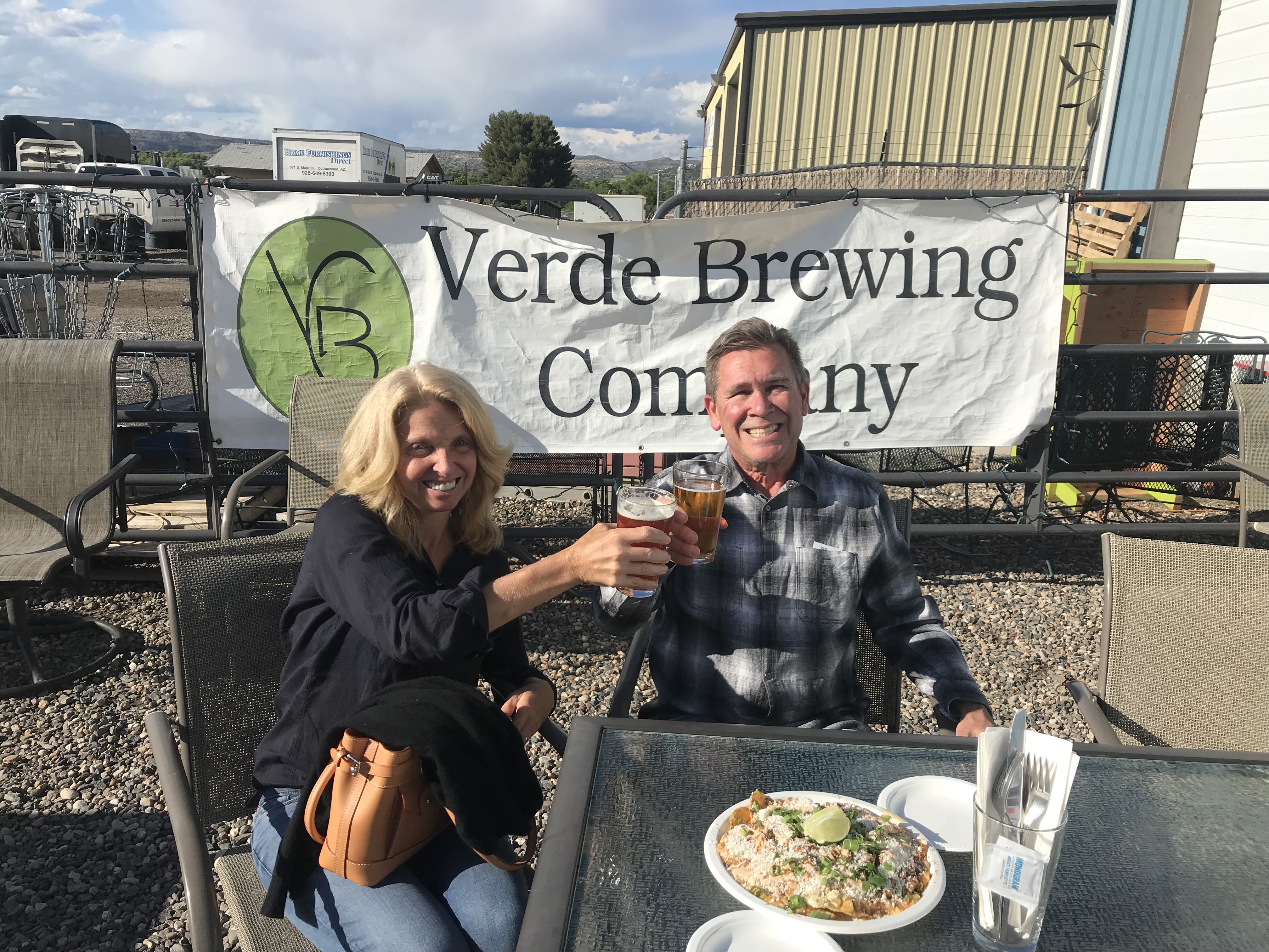 Once again, off work, back on the road, off to Sedona we go on a Wednesday afternoon. First stop along the way is one of my favorite nano breweries is the Verde Brewing Company. They have come a very long way in perfecting their brews. The Bullpen Bourbon Stout has always been my favorite but Carolyn and I decided to change things up. I went with the Gold Buckle Blonde and Carolyn had the Wildflower IPA. Both excellent and both brewed with local honey. Usually I would go with the IPA and Carolyn the blonde but it appears we have evolved in our craft beer selection. The nachos Elote style were an excellent appetizer. The only negative is the location. I much preferred the previous location but it sounds like they will be working on getting a nicer setup. No matter what, it is worth the stop. Of course we had to do a few cheers and toasts to our friends with birthdays.