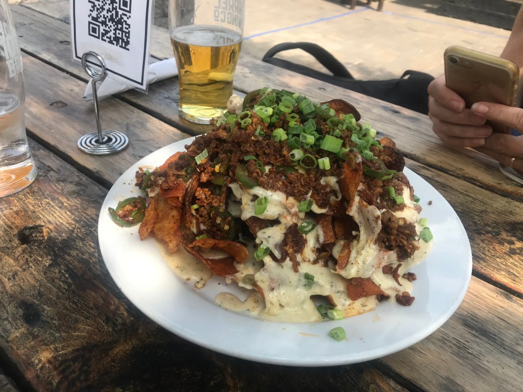 Carolyn and I stopped at 10 Barrel and had us a beer and sat outdoors discussing all things Darel. It was a totally different experience and we were able to enjoy, relax, and reminisce. We ordered the STEAK & GORGONZOLA NACHOS and it was a home run. I couldn’t even tell you what beers we had but they were good and the service was completely different from the previous evening. It all seemed right.