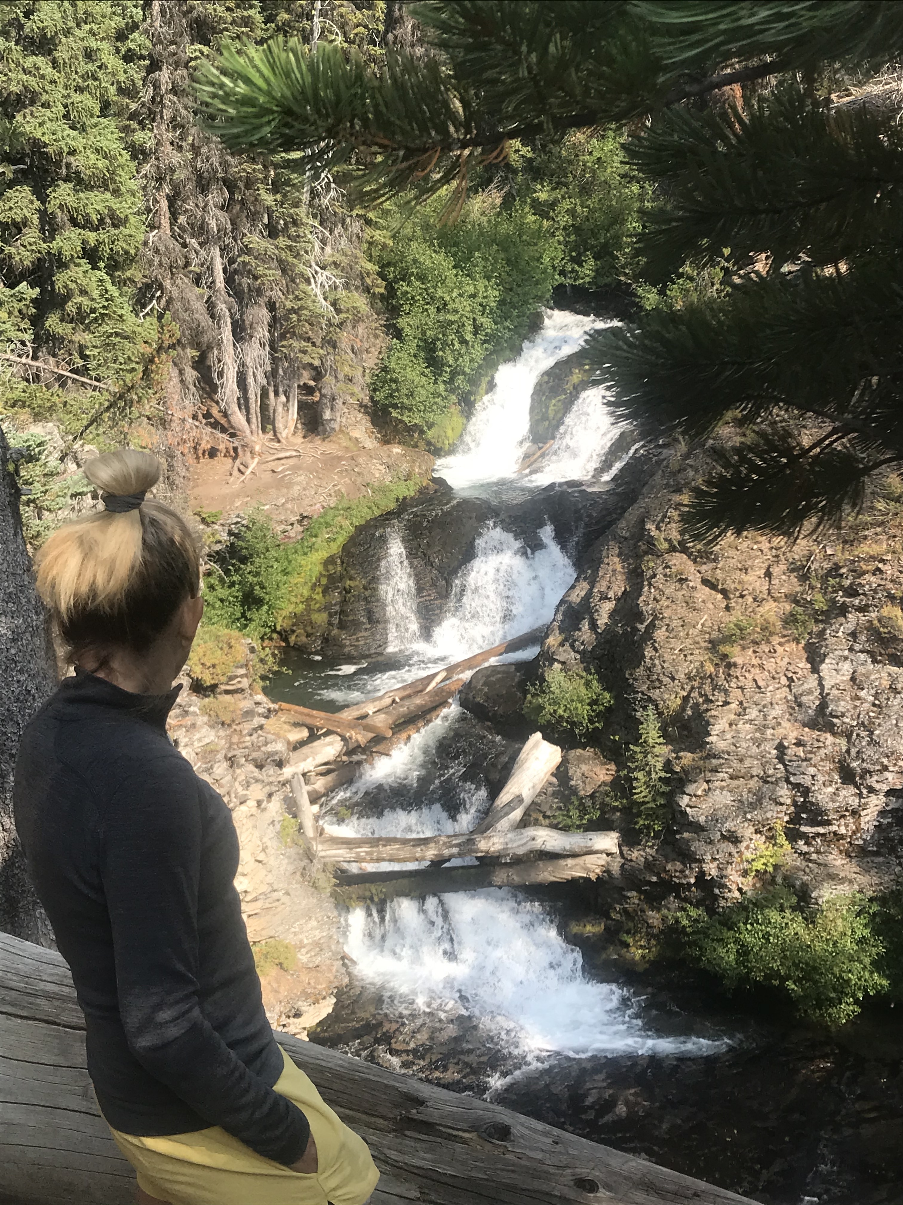 I’m feeling pretty well so Carolyn and I agree to continue on the trail, and there are few hikers out today. We only encounter a couple of mountain bikers, and maybe 4 or 5 hikers on the trek towards Happy Valley. I was so glad we ventured onward as we encountered multiple falls along the trail. Now these falls weren’t small ones but actually each one had long water drops and were amazing to see.