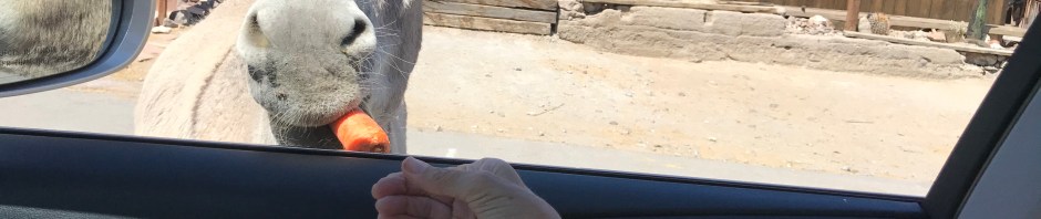 We arrive in Oatman from the south on Historic Route 66 into the old mining town now a tourist stop for checking out the wild burros that roam the streets. What a fun stop on the road. We had brought carrots as a feed of choice for the burros and they sure took after us.