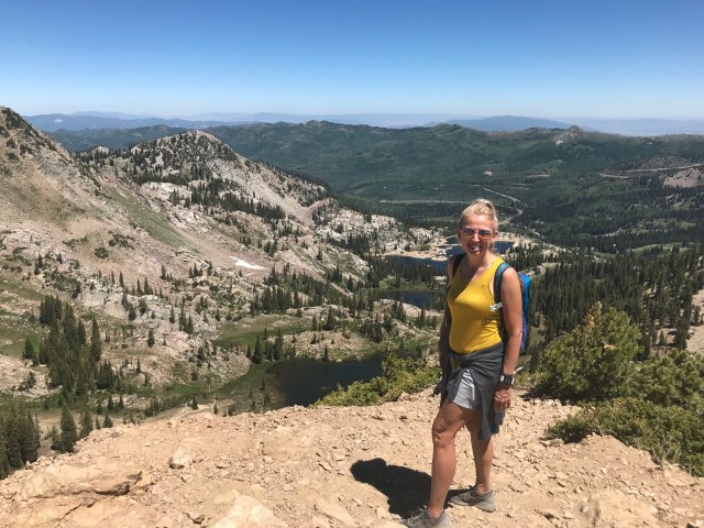 After eating we decided to do a small hike on the Historic Union Pacific Rail Trail that runs through the area along Silver Creek. The trail is mainly used by mountain bikers and runs for 28 miles. We return to Park City and take the bus downtownfor some walking around and end up at Butcher’s Chophouse and Bar. We were able to sit outside an enjoy a beautiful evening with a fantastic Kolsch style beer from Melvin Brewing in Wyoming–Killer Bees, a blonde ale brewed with honey. It is fantastic and I can honestly say that it is one of the best I have ever had. Light with just a touch of honey for a great summer sipper.The next morning after breakfast we grab our first brew of the day at the Silver King Coffee, Co. It is excellent and is just a small spot with a drive through and a walkup window. Loaded up with caffeine, we drive from Park City to Brighton Resort and begin our hike to Sunset Peak. The sun is shining and it is a beautiful warm day to hike to the summit of 10,670 gaining a total of 1900+ feet in the 6+ mile hike. The hike for the most part is fairly smooth and not real jarring on the joints. The trek towards Sunset Peak is exposed with lots of sunshine on top of you. The views are stunning of the Wasatch Mountain Range and you can see the Uinta Mountain range to the Northeast. At the very beginning, we hike along the ski slopes and turn to hike past several lakes. We added mileage by hiking off our main trail to see the water at some of the lakes. As we continued our climb there were a few areas of snow. No animals and few humans on the trail. The trail took us past several lakes and streams that were quite peaceful and beautiful. On our journey to the top, we met several friendly hikers that pointed out various peaks in the distance. I love the fact that you be away from people and experience some fantastic areas with limited human contact. It was a strenuous journey for this old guy and after 3.5 hours of hiking, I was ready to head back to Park City and a craft beer from Utah.
