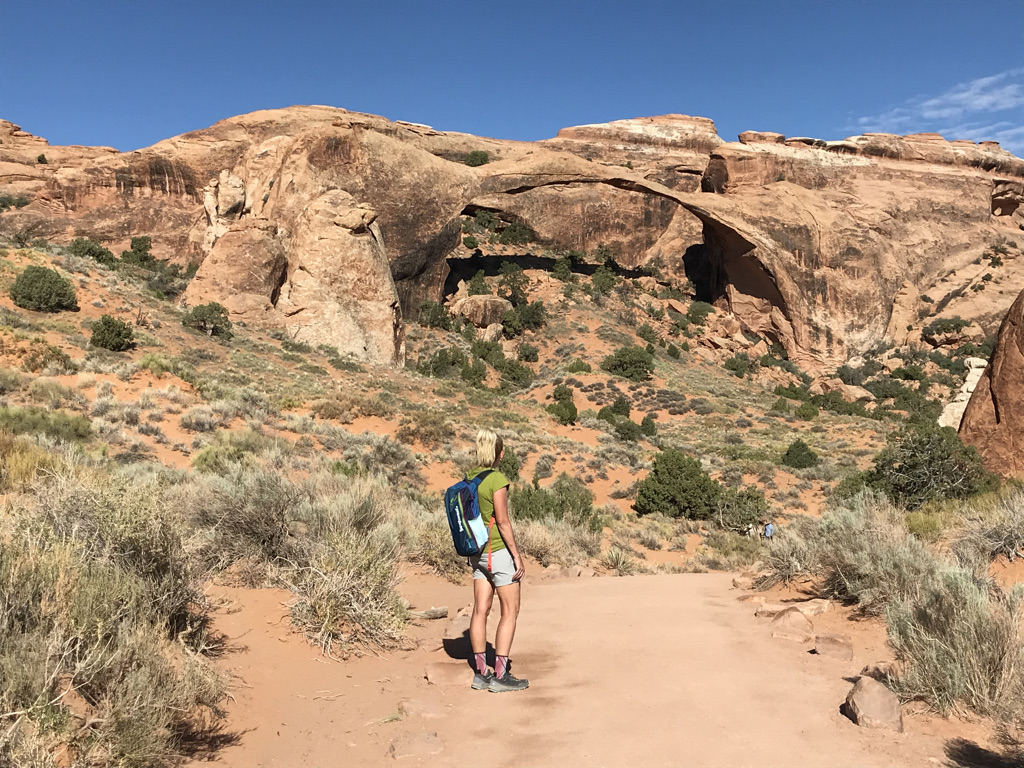 We head to the Devil’s Garden area to see the many arches in the area. We had planned to hike the Primitive Trail Loop but reading reviews on how “dangerous” it was we were hesitant. At the Devil’s Garden Trailhead, we join the throngs of people and hike our way to multiple arches with the most popular being Landscape Arch. Our journey evolved and our hesitation was about to change as our sense of adventure returned.