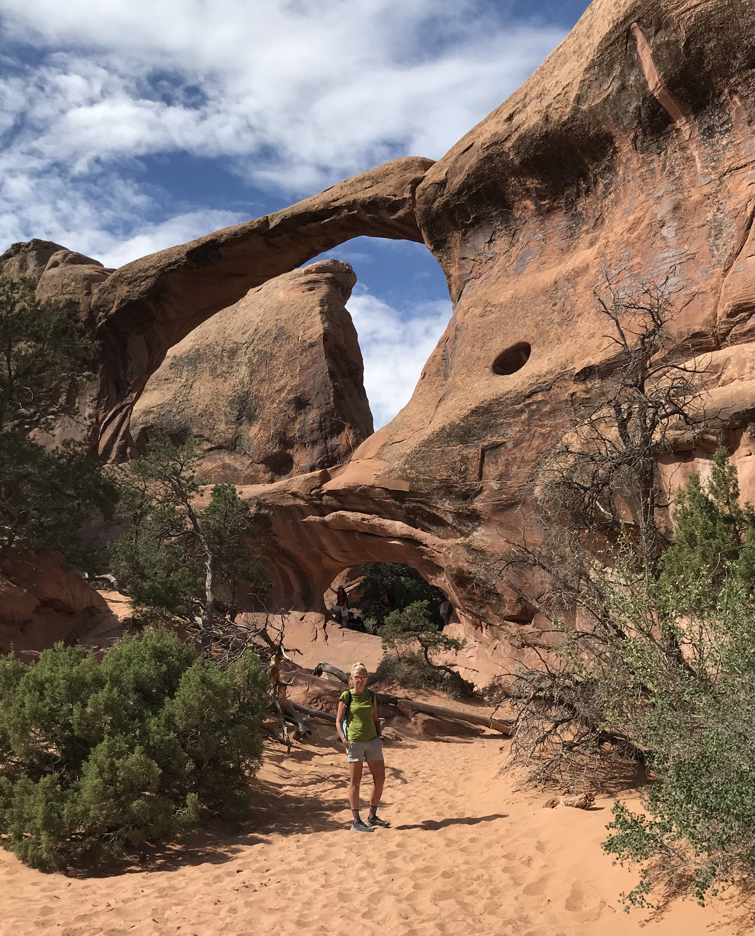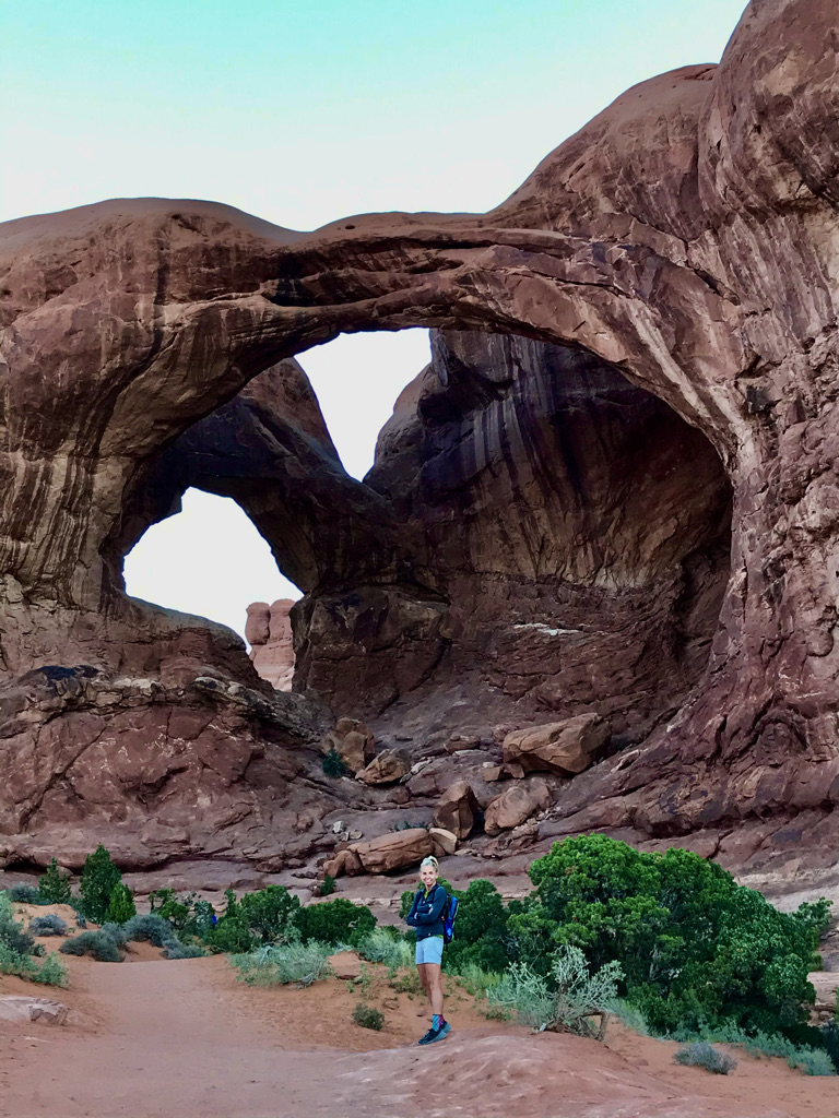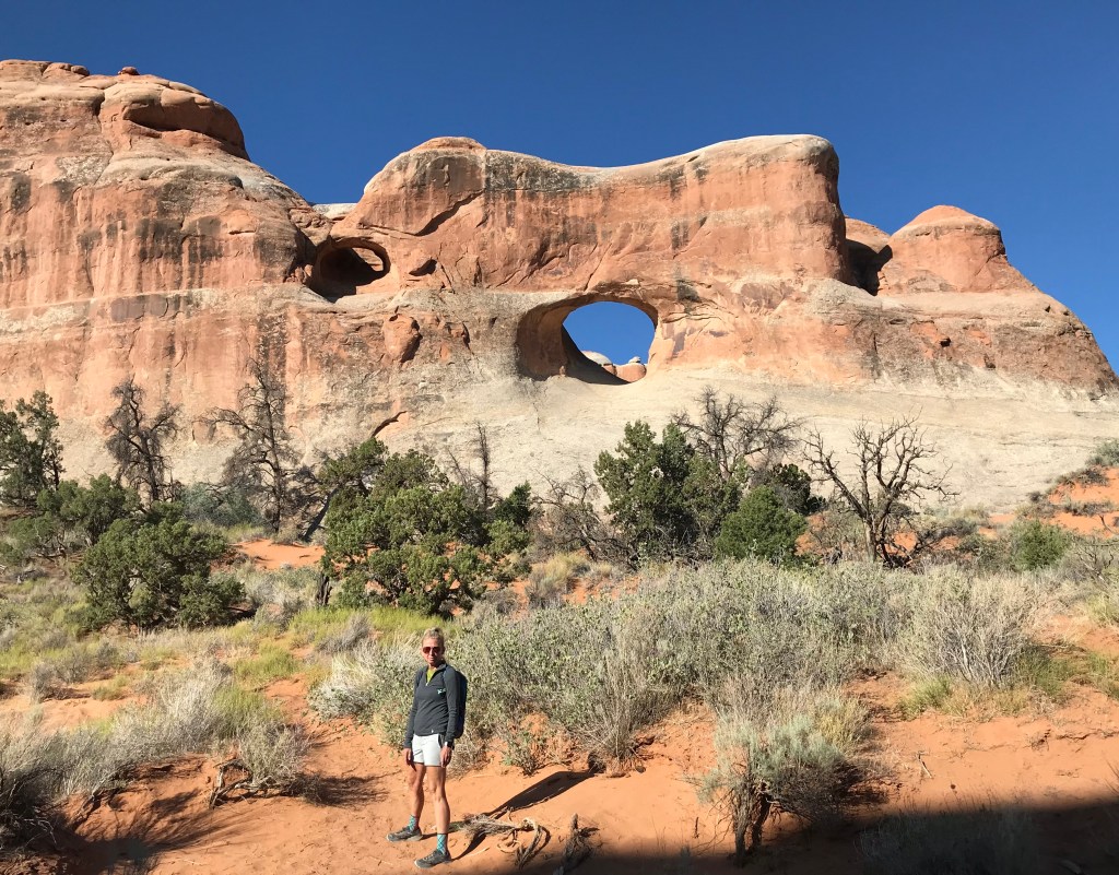The further we go, we get further from the throngs. We end up at Double O arch and discover that we had already hiked across what was said to be a very dangerous and narrow “fin” without even knowing it.