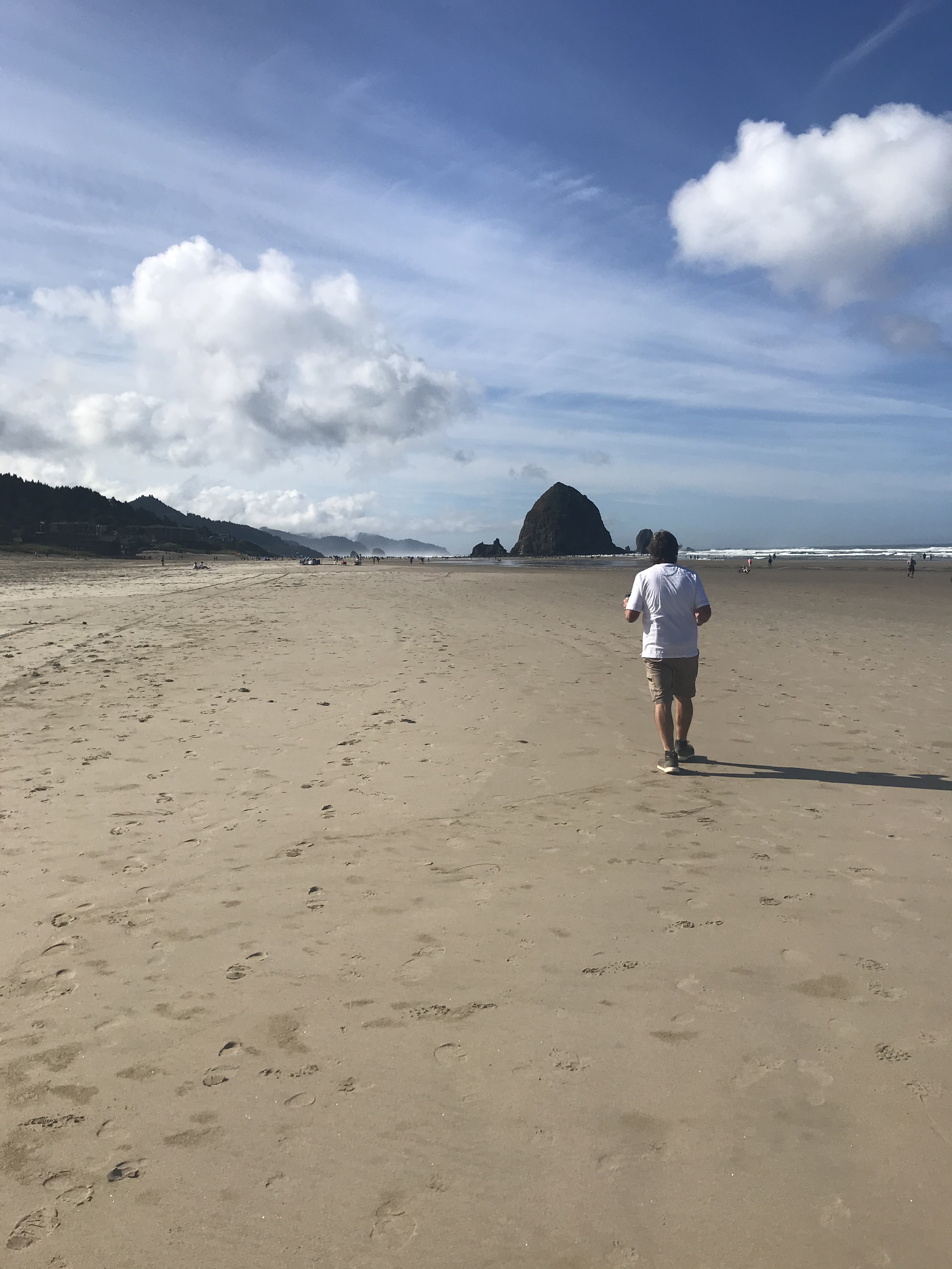 We stayed at the local Embassy Suites, got up early and headed to Cannon Beach. The west coast of Oregon is spectacular. After coffee, we head on down to Haystack Rock. Beautiful day for a walk along the Oregon Coast. We make a big loop and walk around the town and even stop in the quaint local library.